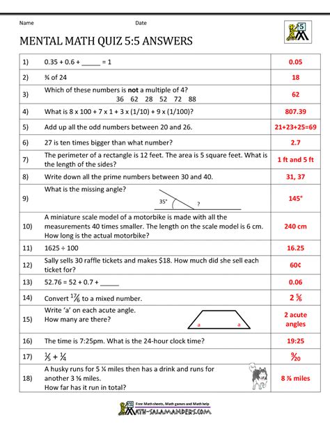 Download Math Questions And Answers For Grade 5 Doc